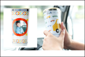 プロジェクト第1弾の取り組みは、私が以前から考えていたアイディアを形にしました。思いついたきっかけは、整備工場に入ってくるトラック。皆さんよく写真を乗っけてるんですよ、家族の写真だったり、恋人の写真だったり、ペットの写真だったり。それをみてこんなコンセプトを思いつきました。「家族の写真を飾っているドライバーは、事故を起こす確率が低くなる、そうですよ。」という事です。当社の扱うトラックは中長距離を走る場合が多く、ドライバーさんも一週間、長いと二週間ぐらい家に帰って来れなかったりするんですよ。そんなドライバーさんたちに、当社から「大切な人」の写真を印刷したオリジナルタンブラーを渡しています。