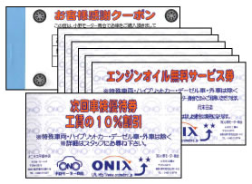 ただ今、小野モーター商会さんでお車を購入された方にはもれなくエンジンオイル無料サービス券や工賃割引券がセットになった『お客様感謝クーポン』を進呈しております。