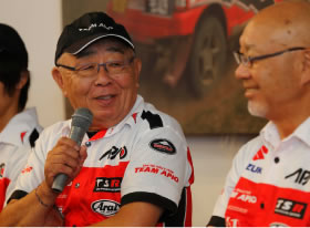 パリダカでも有名なラリードライバー菅原義正氏とは同じTEAMアピオの盟友でありライバル。パリ・ダカから続く絆です。